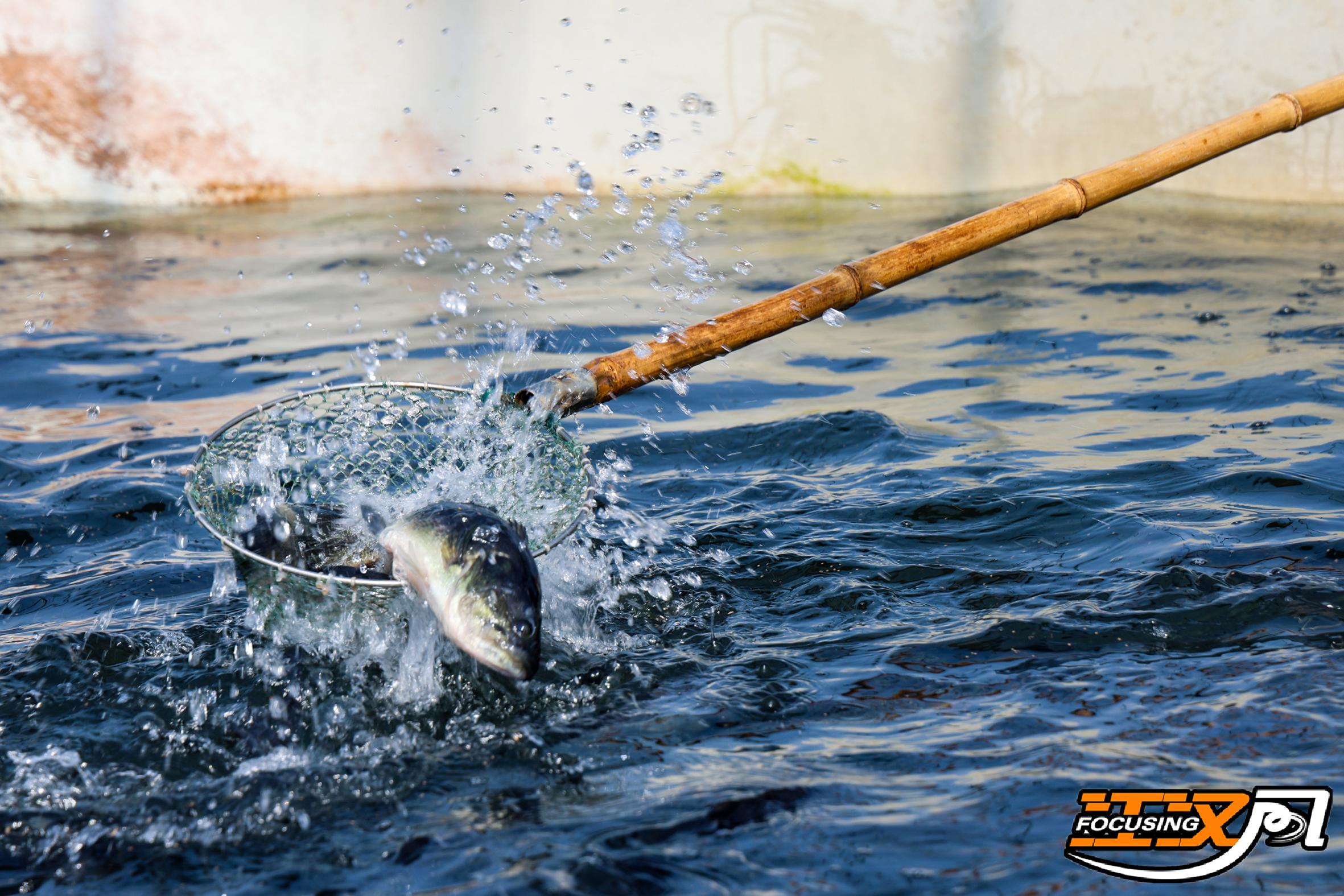 11月28日,在江陵县秦市乡东陈岭村的鲈鱼养殖基地内,饲养员正仔细查看鲈鱼的生长情况。