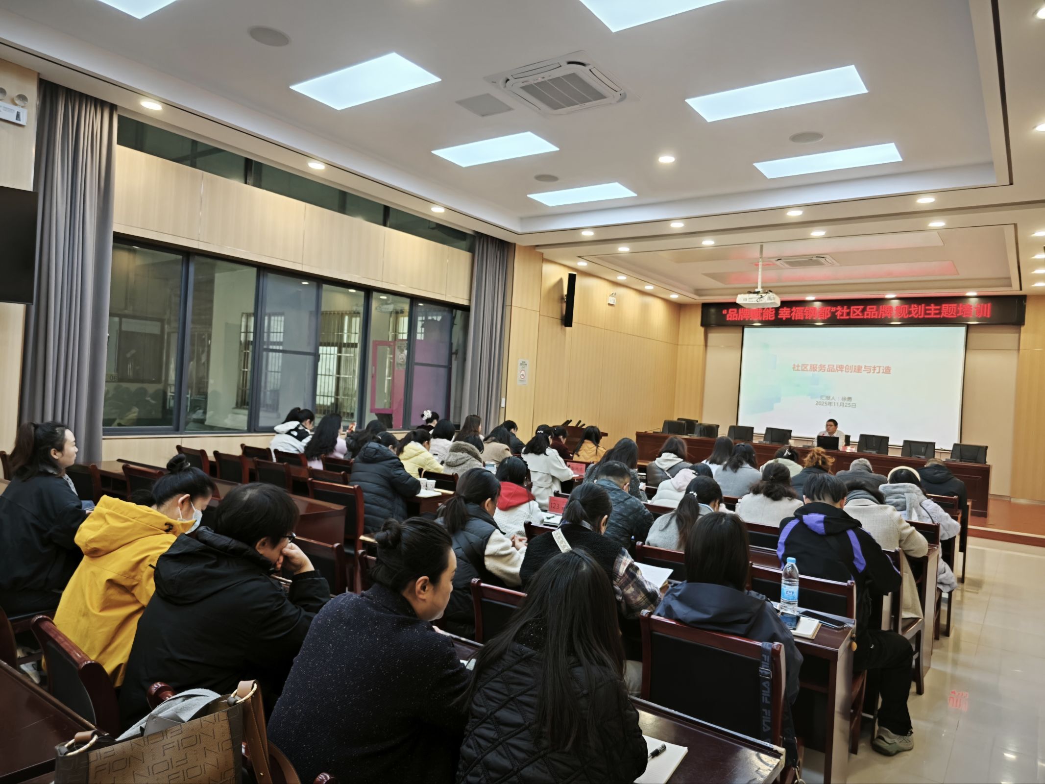 为推动社区从传统管理向现代治理转型、从基础服务向品质服务升级,11月25日上午,在街道社会事务办的领导下,武汉市青山区钢都花园街道社工站组织辖区内7个社区开展“品牌赋能·幸福钢都”社区品牌规划培训。辖区内各社区书记、副书记、副主任及两委成员共计45人参加培训,为街道社区品牌建设凝聚共识、积蓄力量。