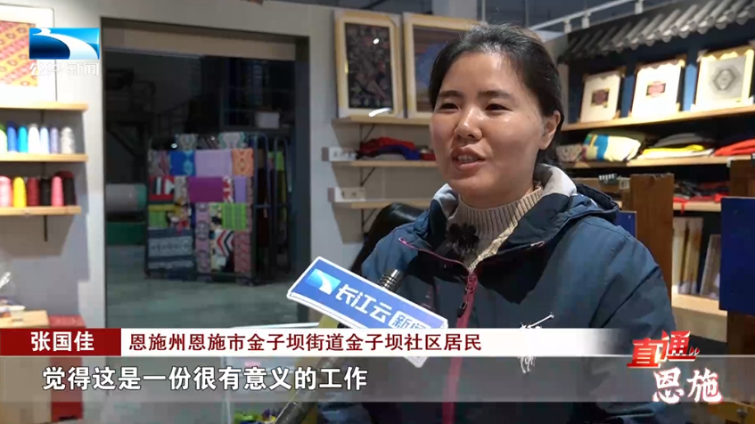恩施州恩施市金子坝街道金子坝社区居民 张国佳:觉得这是一份很有意义的工作,然后自己能够织出很漂亮的织锦的话,很有成就感。