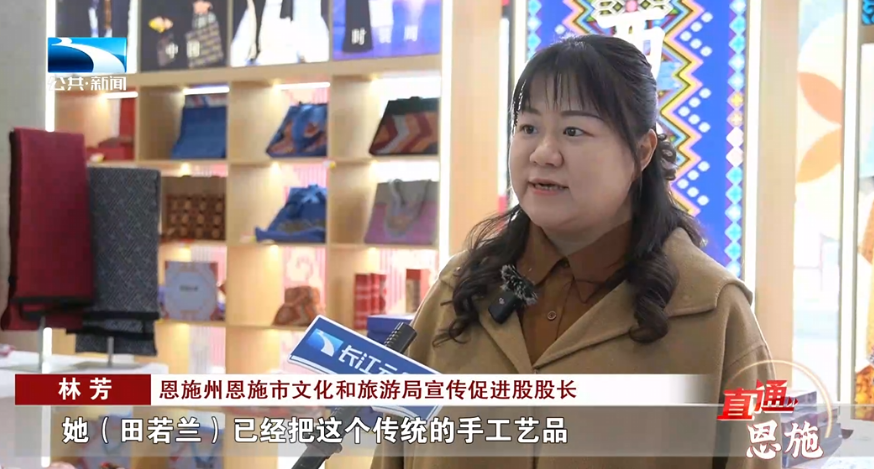 恩施州恩施市文化和旅游局宣传促进股股长 林芳:她(田若兰)已经把这个传统的手工艺品,达到了一个量产,变成了一个工业化的这种量产的一个产业的产品了,所以说,就是为我们这个文化和非遗的这种融合的发展,注入了新的生命力。