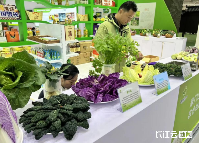 “大菜商”展台的蔬菜同样底气十足。这些新鲜蔬菜不少来自天门蔬菜科技示范园,基地面积3000亩,50多个高标准大棚里培育着近2000种蔬菜。来自嘉鱼富德蔬菜专业合作社的新鲜蔬菜同样“受宠”,据了解,嘉鱼县供销社领办创办的富德蔬菜专业合作社是湖北省第一家入驻粤港澳大湾区“菜篮子”的生产基地。