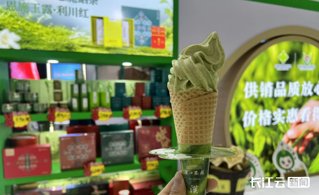 开展首日,茶味冰淇淋便火速出圈。冰淇淋精选恩施玉露、茉莉花茶等优质茶品为原料,将茶粉的天然醇香与冰淇淋的清凉丝滑巧妙融合。这样的跨界创新,不仅为楚天好茶拓宽了消费场景,更凭借独树一帜的舌尖体验,让传统茶饮以全新的姿态贴近消费者。