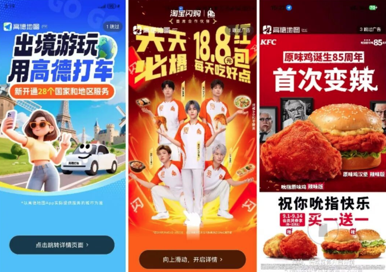 百度地图和高德地图都存在开屏广告问题,也都是互动性质广告,包括“点击”、“向上滑动”以及“扭动手机”等互动方式。无论哪种都存在不小心误触发,跳转问题。