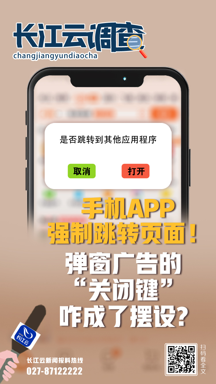 长江云调查|手机APP强制跳转页面!弹窗广告的“关闭键”咋成了摆设?