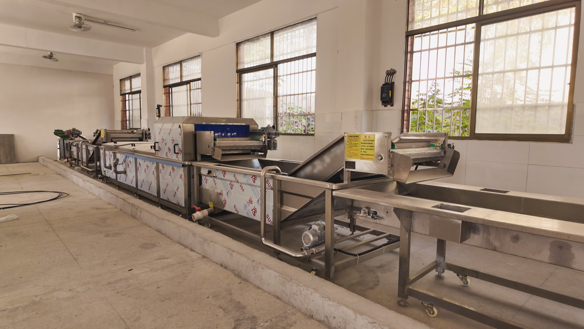 为延长产业链,提升附加值,基地采用“田间+工厂”发展模式。在基地不远处的加工厂房内,自动化清洗、切片、烘干等设备已调试到位,待鲜薯采收完成后,将立即启动深加工生产线。