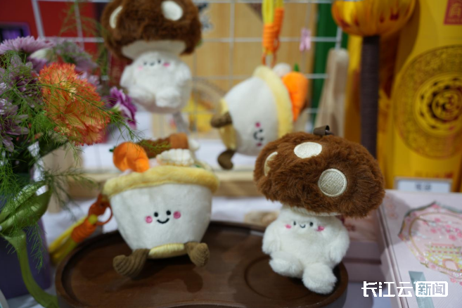 而在“炎之有礼”创意产品区,随州的农特产品被赋予了全新形态:以香菇为原型的公仔,棕褐色菌盖搭配米白色菌柄,自带腮红萌态,内置语音模块;拐子饭玩偶则还原了这道随州特色美食的经典造型,兼具实用性与趣味性。随州文体旅集团相关人员透露:“这些产品的创意都来自随州的农业地标,我们要做的就是把‘田间地头的宝贝’变成‘潮玩好物’,让消费者一眼就能记住随州。”