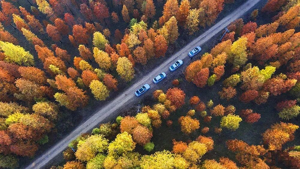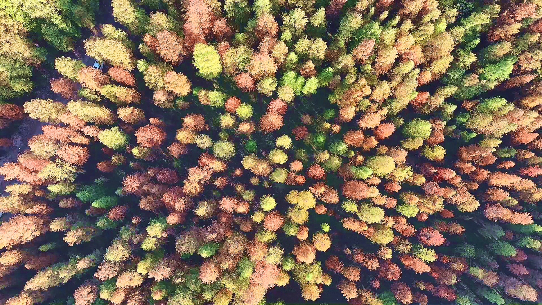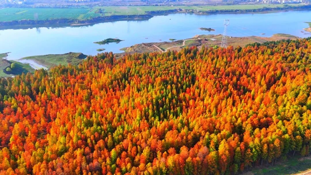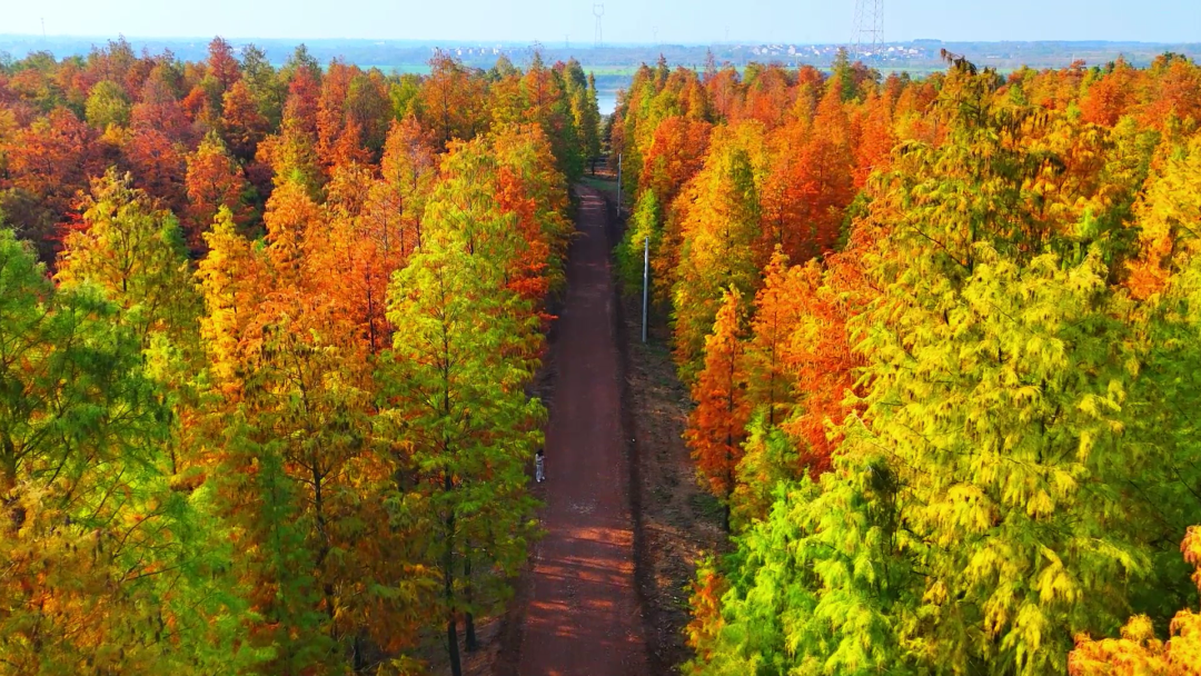 每年秋冬之际,湖北省孝感市孝昌县陆山林场的红杉美景渐次铺开,吸引着不少市民游客前来,成为徒步赏景的热门打卡地。从空中俯瞰,一株株红杉如同一朵朵盛开的花朵,深深浅浅的红色与金色交织,在阳光的穿透下,洒下温暖而梦幻的光影,让人仿佛闯入浪漫的童话秘境。