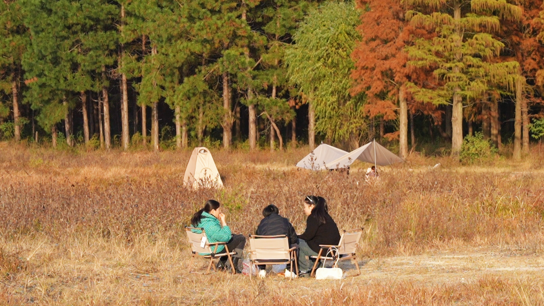 除了拍照定格美景,不少游客还支起帐篷、备上简餐,在红杉环绕的静谧中,全身心沉浸于这份自然馈赠的美,和家人朋友一起享受慢节奏的休闲时光。