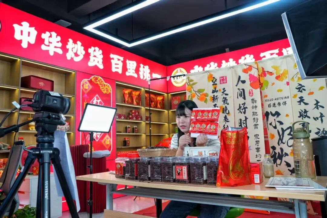 ▲在旭东食品的电商基地,主播正在拼多多直播间讲解各式风味瓜子。肖僖 摄