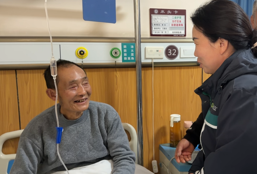 另一边,在城市公交战线默默奉献的熊会萍,一直深深敬佩郭大荣自强不息的精神。得知其遭遇困境后,她立刻带着慰问品和帮扶诚意登门探望。病床前,两位“中国好人”打开了话匣子:熊会萍分享着公交线上关爱特需乘客的服务心得,郭大荣讲述着带领乡亲抱团致富的酸甜苦辣,朴实的话语里满是坚守与担当。“你的精神感动着我们每一个人,你不光把自己的日子过好,还带领乡亲们把日子都过好。”熊会萍的话语中满是敬意。