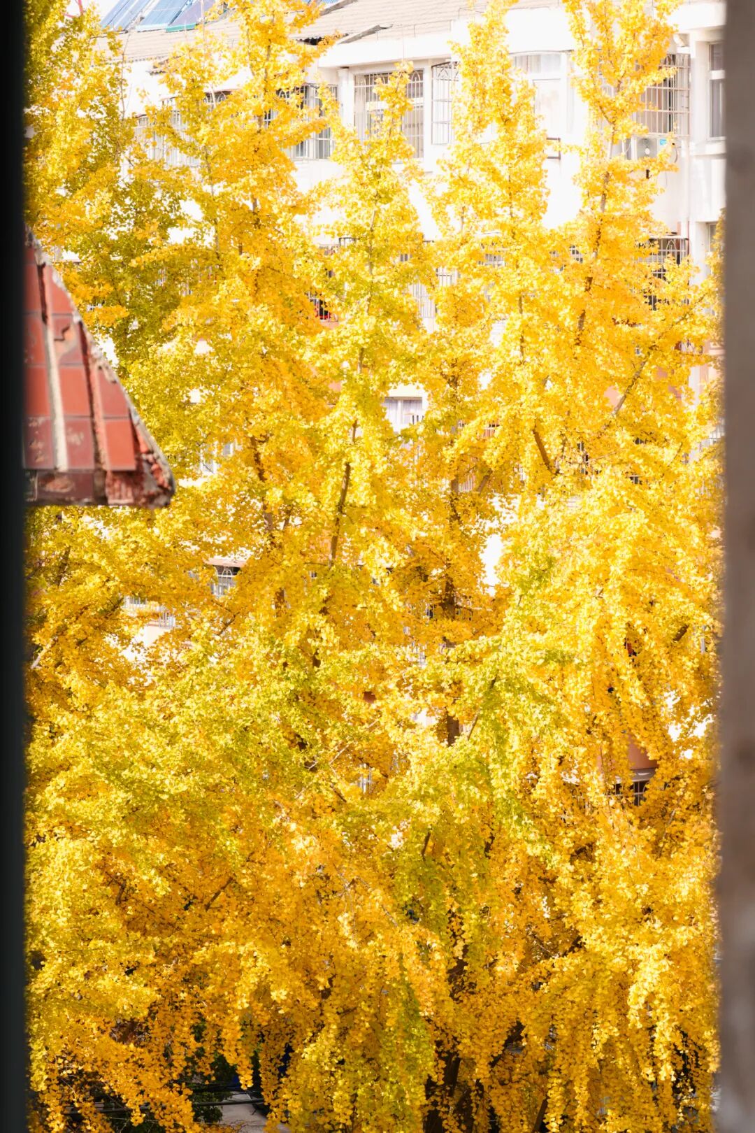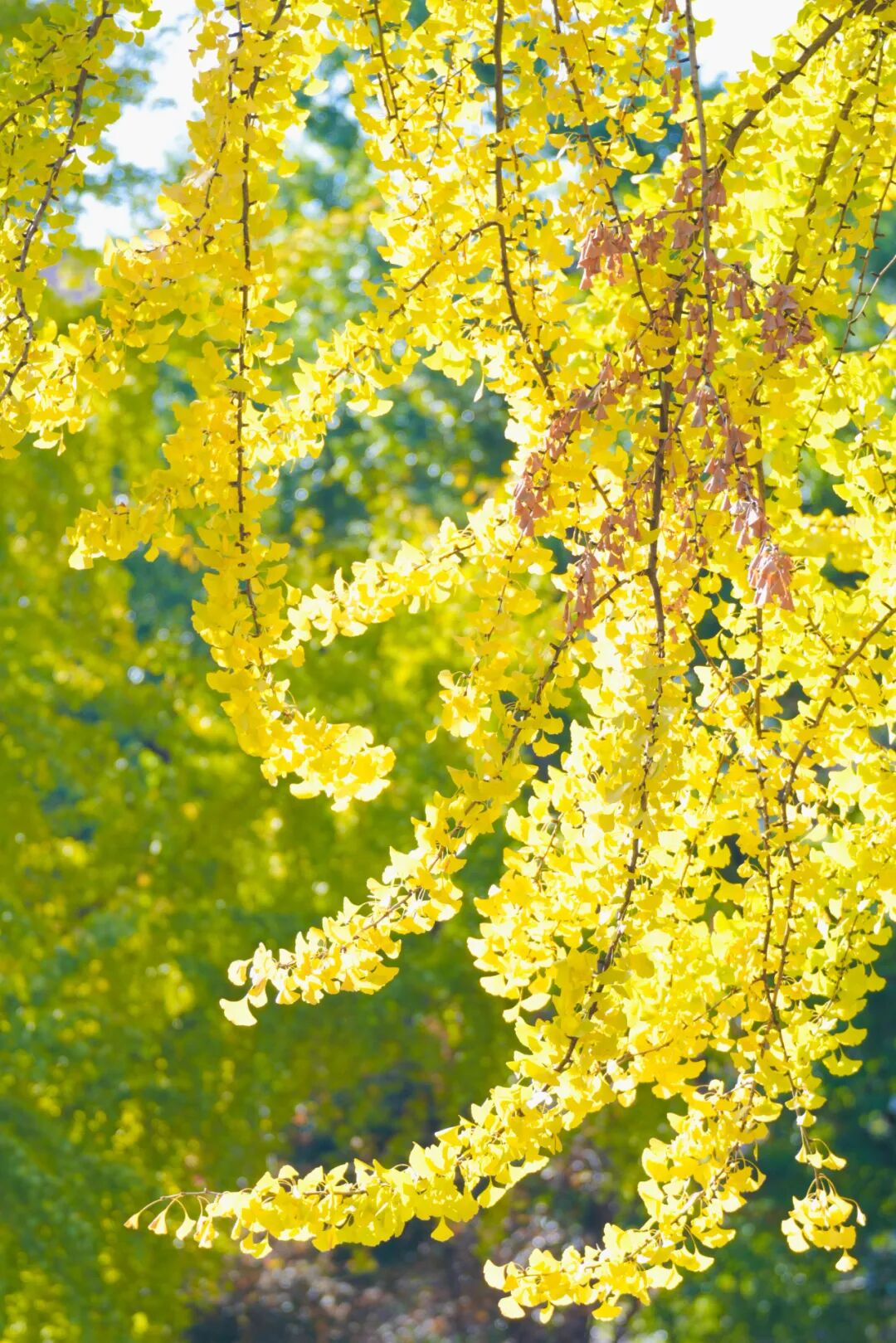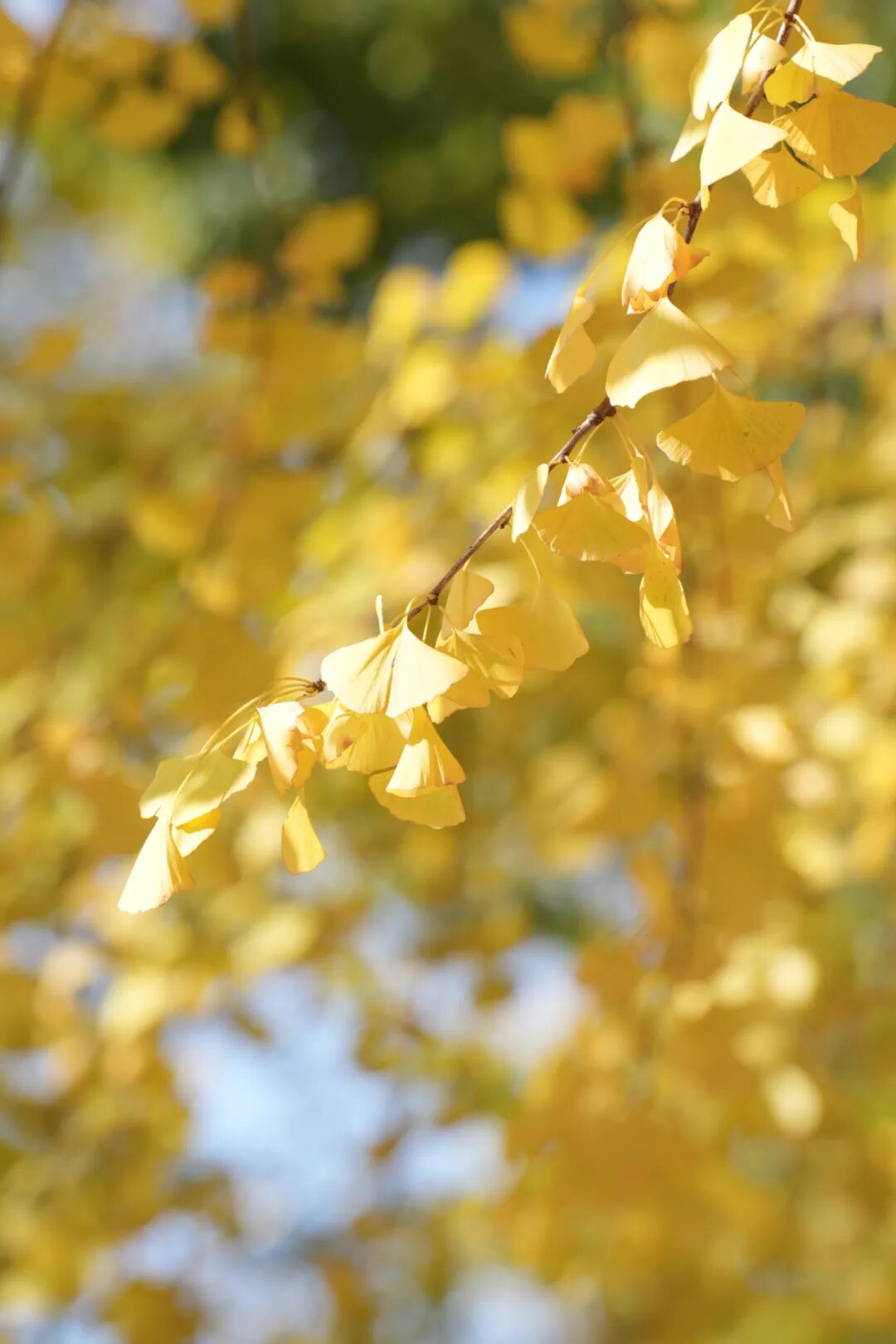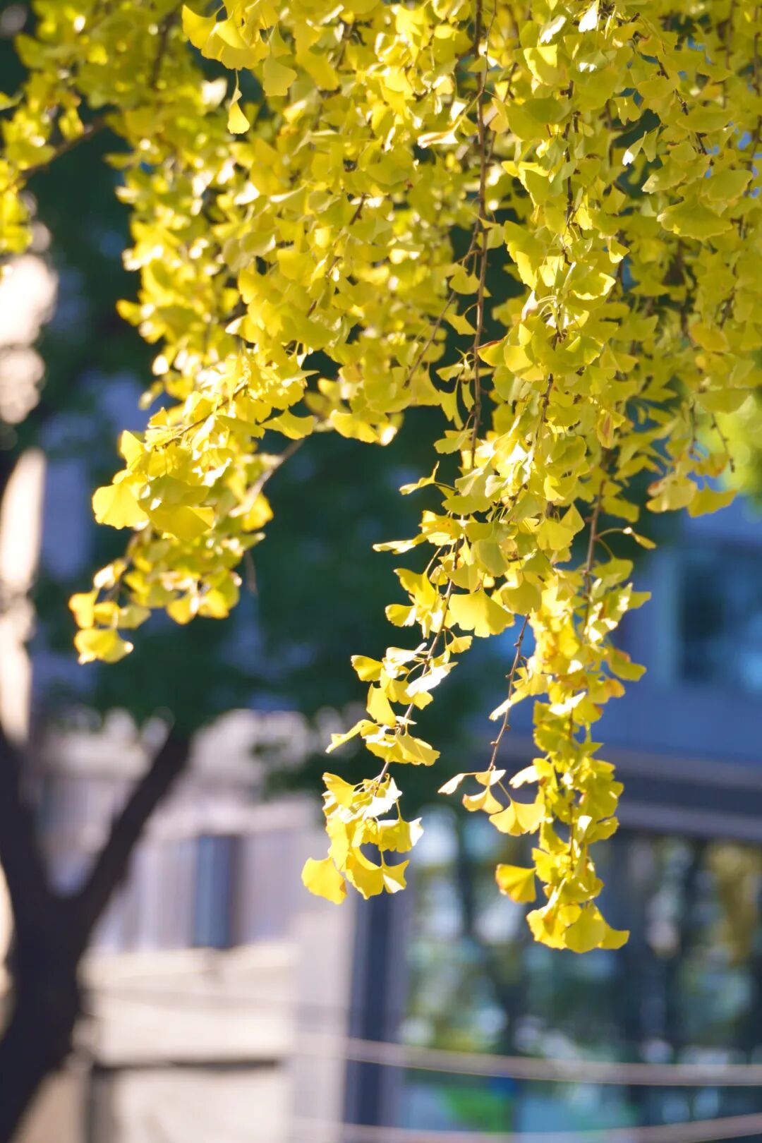 尽数倾泻在路两边高大的银杏树上