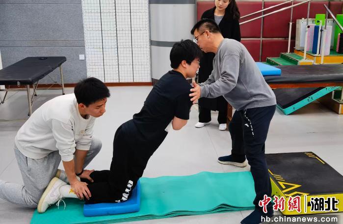 图为陈建康复团队为苏玲丹做康复训练治疗。 武汉体育学院运动医学院供图