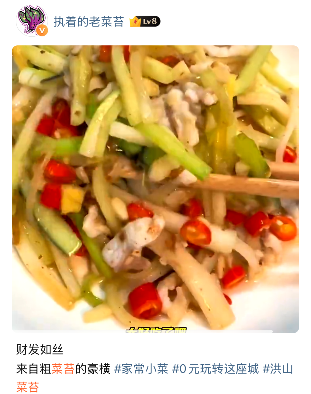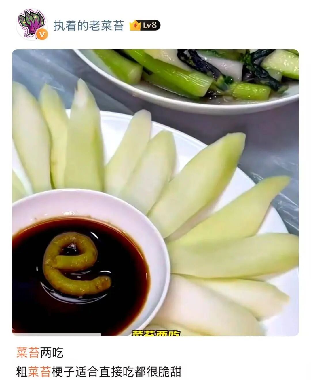 ○网友“执着的老菜薹”执着于粗杆子洪山菜薹,常分享菜薹探店和创意料理,the here的菜薹咖啡就是她给的灵感