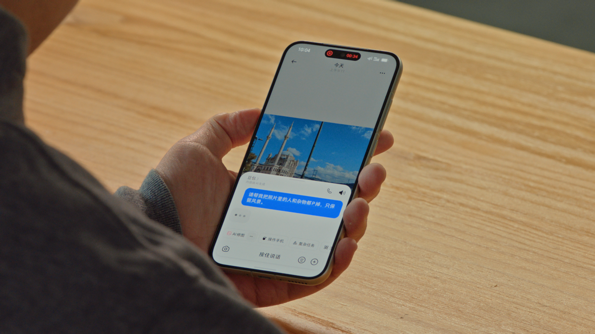 多模态方面,豆包手机助手打通了系统原生相册,用户可直接在相册内通过语音对图片下达修图指令,例如删除人物、清理杂物等。