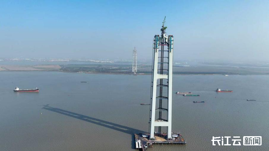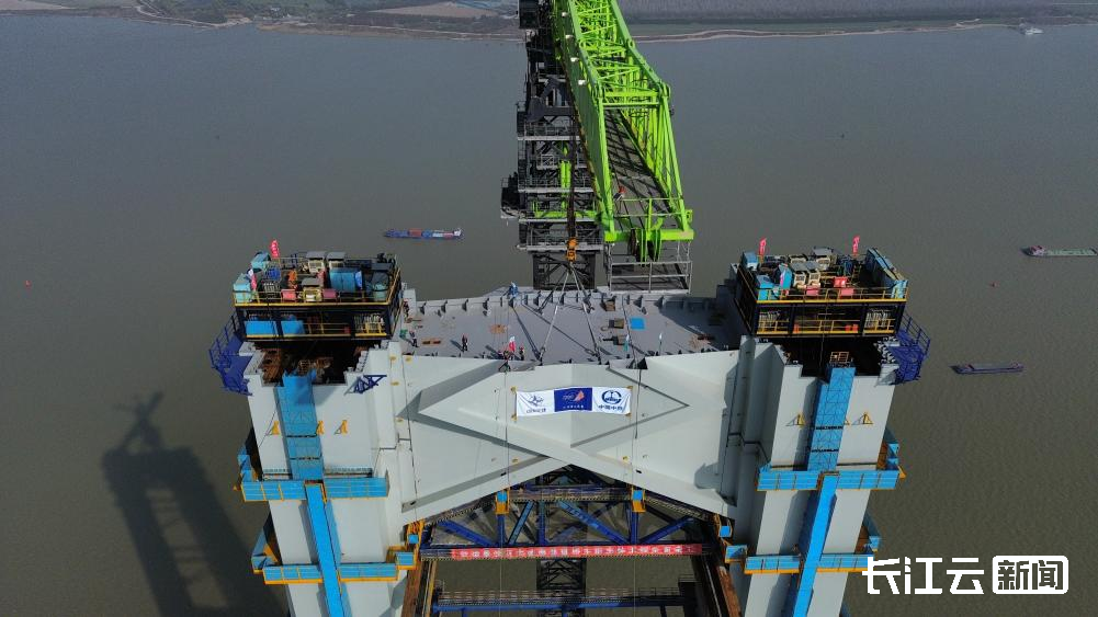 “此次上横梁精准合龙,标志着大桥南航道桥南主塔主体工程施工顺利完成。从设计图纸到高塔矗立江心,从主塔首节段吊装到上横梁合龙,历时630多天,每一次吊装的精心组织,每一个节段的精准对接,都是团队攻坚克难的成果,更是中国桥梁技术向世界顶尖水平迈进的见证。”中交二航局张靖皋长江大桥项目技术负责人黄修平表示。