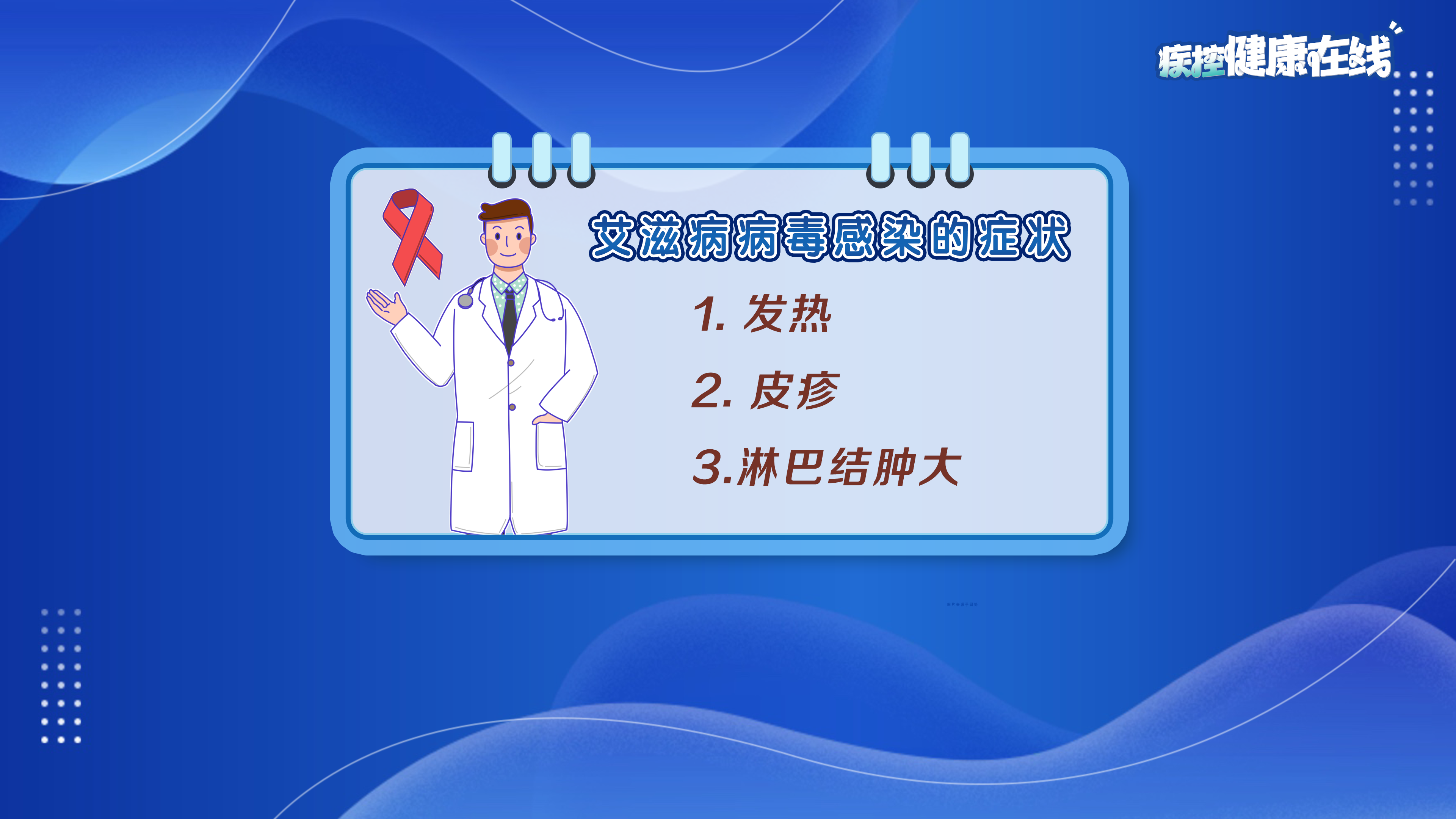 艾滋病期:免疫系统遭极度破坏,出现机会性感染、恶性肿瘤和多系统损害,如持续不明原因低烧、淋巴结肿大、慢性腹泻、卡波西肉瘤、淋巴瘤等。