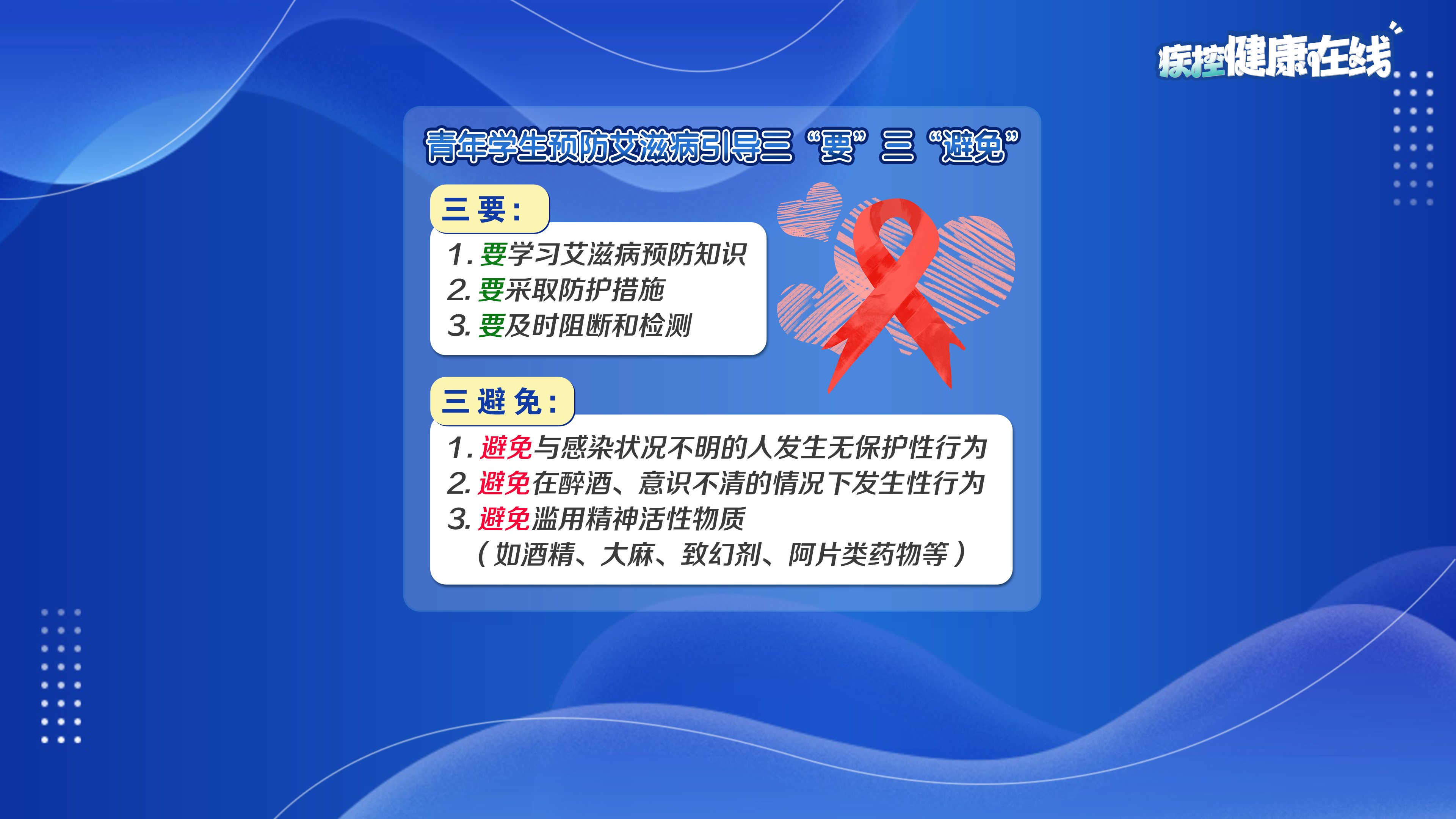 核心问题是风险意识和防护措施缺失,虽了解艾滋病,但亲密接触中不愿或不会坚持使用安全套。青年学生三“要”三“避免”。