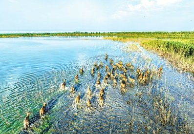 荆江水域江豚种群数量增至100余头,石首天鹅洲的麋鹿种群壮大到4600头左右