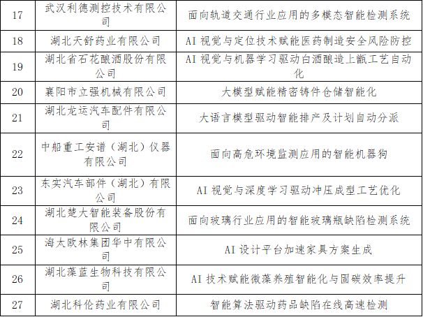 湖北省入围2025年全国中小企业人工智能典型应用场景名单