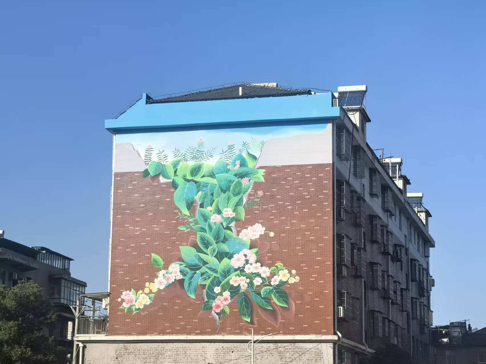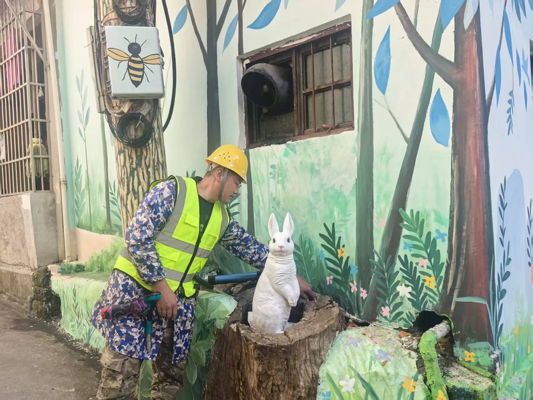 最让人动容的是一面名为“破墙之花”的墙体。创作者并未刻意掩饰岁月的残缺,而是让绚烂的花朵从破损处蓬勃“生长”出来,隐喻着新生与希望。就连电线杆、电表箱等市政设施也经过精心“梳妆”,悄然融入街区的整体风貌。