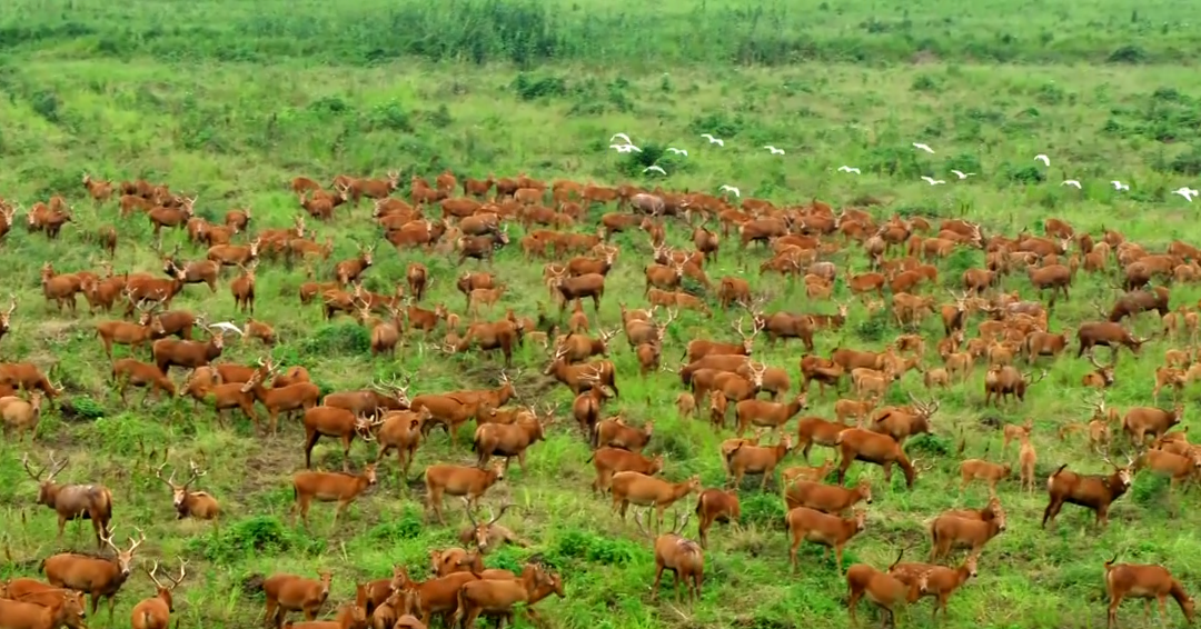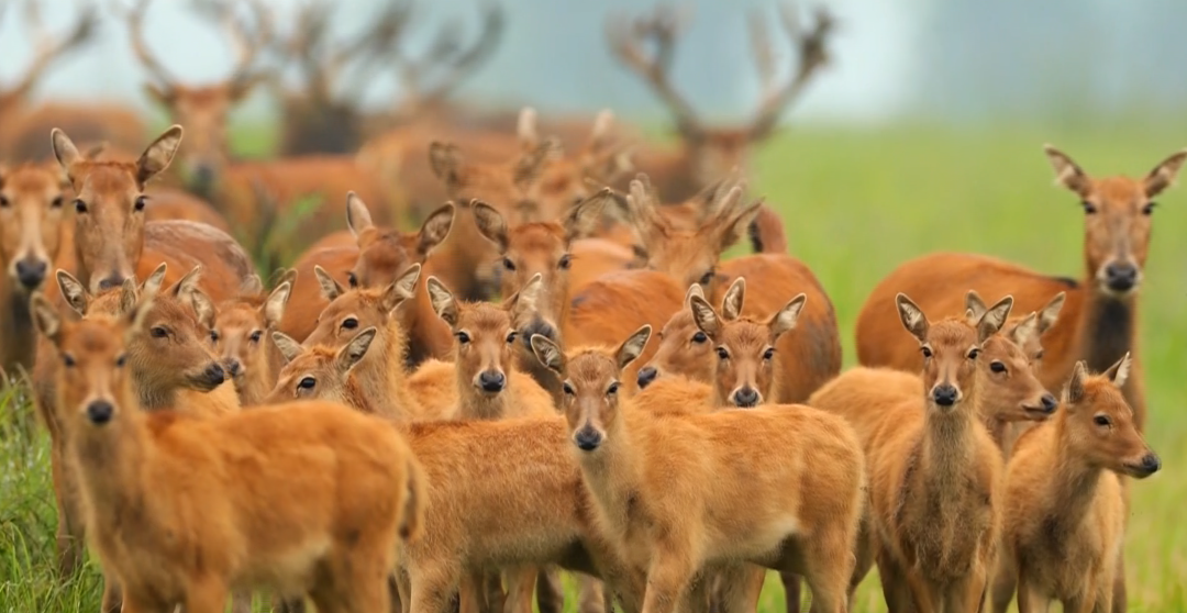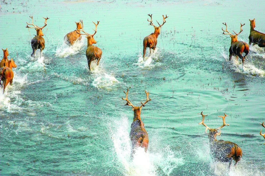 令人欣慰的是,放归首年,麋鹿就成功产下8头幼崽,证明它们仍然保有野生本能。然而1998年的长江特大洪水,给刚刚安家的麋鹿带来严峻考验。令人惊喜的是,洪水过后,麋鹿不仅顽强存活,还意外实现了种群的天然扩散。随着湿地生态持续改善,麋鹿数量开始稳步增长。