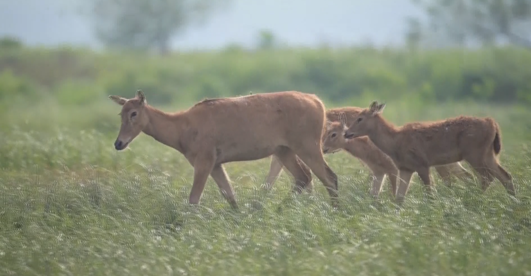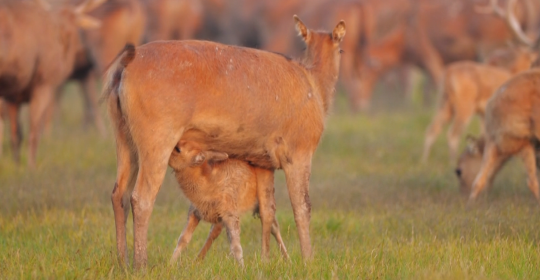 得益于本地水草丰茂、植被种类丰富的自然环境,这里的麋鹿种群呈现出显著的生长优势,其鹿角形态尤为粗壮。近年来,种群数量呈现指数级增长态势:早年每年新生幼崽约为一两百头,如今已达到600头。具体来看,2023年新生数量为400余头,2024年增至近500头,而今年突破了500头。