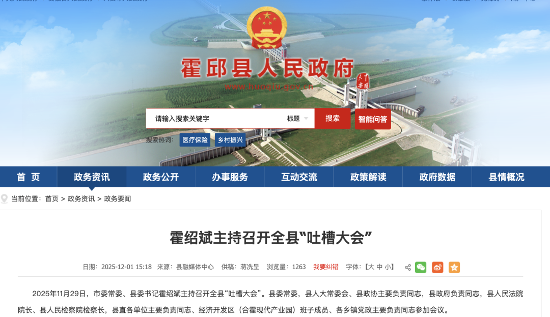 近日,安徽霍邱开了个全县“吐槽大会”,引发全网热议。