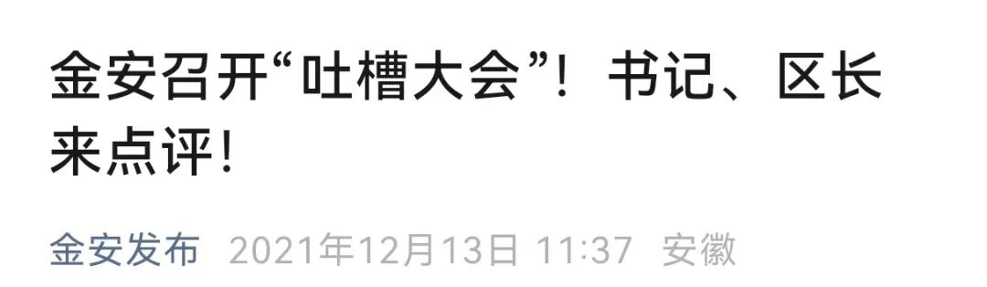 目前,“吐槽”内容并未对外公开。不过。根据此前报道,去年金安区的“吐槽大会”是“辣”味十足,许多深入人心的观点和见解让与会人员不时拍手称好,感到兴致勃勃、意犹未尽。