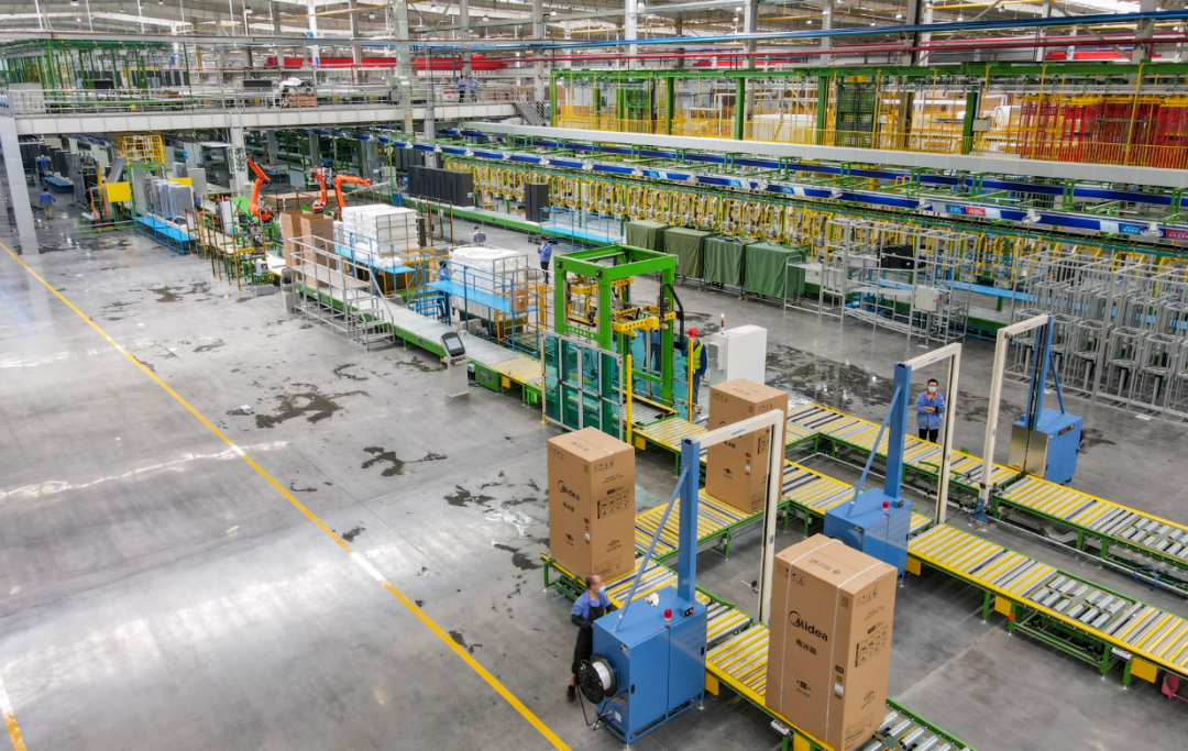 在全球“灯塔工厂”湖北美的冰箱荆州工厂,自动化生产线上,工业机器人精准操作,每条外销订单自动生成定制化的“工艺路线”。