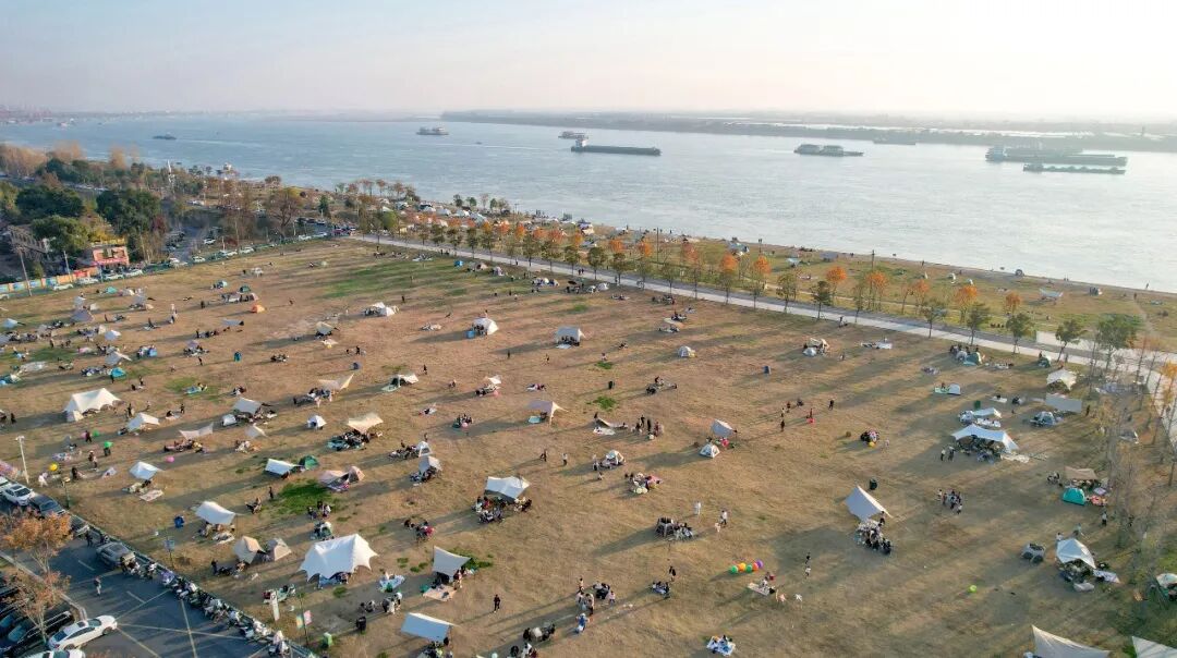 市民在沙市区柳林洲生态公园露营游玩 记者 肖琦 摄