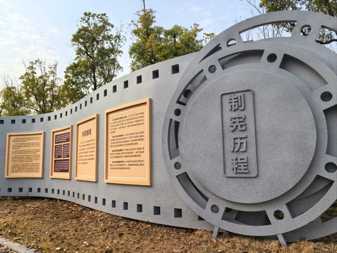 沿着河边漫步,初冬的风带着丝丝凉意,却吹不散人们对法治文化的热情。一条“宪法论语”长廊蜿蜒向前,这里集中展示了关于宪法与法治的重要论述,每一句话都凝聚着中国共产党对宪法地位与作用的深刻认识,是中国特色社会主义法治道路的精神指引,引领着每一位参观者驻足深思宪法的意义与价值。