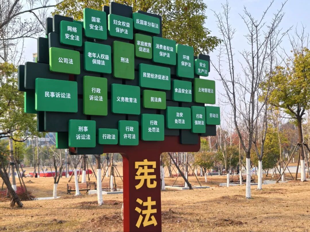 公园以“红耀宪法·法润黄冈”为主题,巧妙融合法治、人文、艺术、生态与自然元素,将宪法文本、宪法发展历程与法治文化深度融入景观之中,让市民漫步公园、享受自然之美的同时,感受到宪法的庄严与温度,真正实现“在休闲中学法”。“这宪法公园建在家门口,以后散步遛弯就能学法律知识,还能扫码学法,就像身边多了个‘法律顾问’。”家住花园社区的市民涂锐表示。