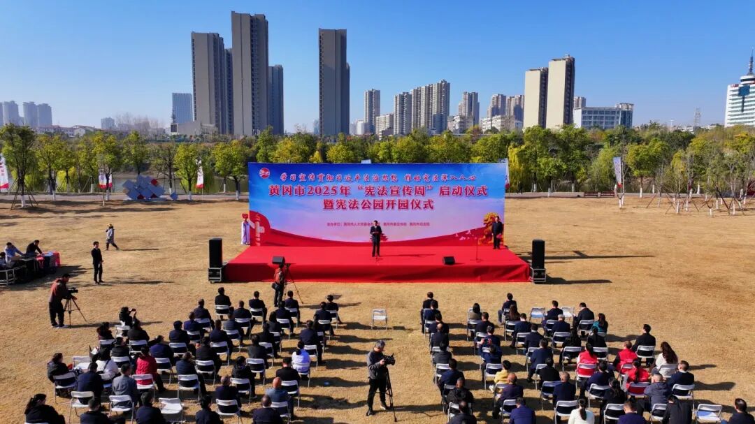 上午10时,黄冈市2025年“宪法宣传周”启动仪式暨宪法公园开园仪式在黄州区长河公园内举行。此次活动由黄冈市人大常委会办公室、黄冈市委宣传部、黄冈市司法局联合主办。现场气氛热烈,各界代表齐聚,共同见证这一重要时刻。
