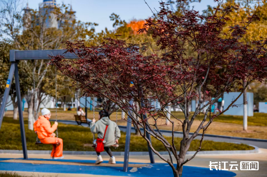 12月3日上午,长江云新闻记者走入常青公园,红叶如霞,景色如画。沿着园路漫步,道路两侧的金陵红枫与水杉错落有致,红叶与常绿植物相互映衬,构成一幅多彩的生态画卷。阳光透过红叶间隙洒下斑驳光影,营造出宁静而温暖的冬日氛围。