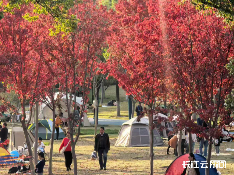 武汉常青公园全面开放露营区域 市民可享“红叶树下”悠闲时光