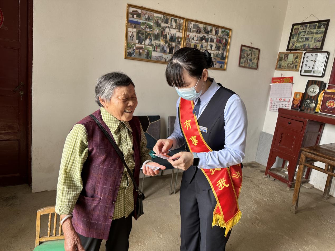 8月6日当天,戴彭俐带领服务队成员与农业银行工作人员携带移动设备,准时抵达灯塘村刘爹爹家中。昏暗的房间里,老人安静卧床,工作人员仔细核对身份信息后,耐心且大声地向老人说明办理事项,在得到刘爹爹清晰确认后,借助移动设备现场操作,全程仅用不到十分钟便完成了社保卡激活手续。