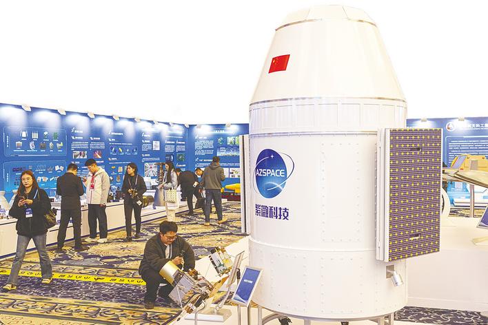 12月3日,嘉宾在迪迩五号模型前参观。 (湖北日报全媒记者 任勇 摄)