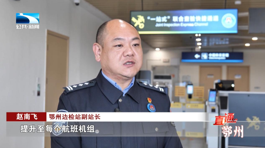 鄂州边检站副站长 赵南飞:通道使用以后,将会从我们原来8分钟左右的检查时间,提升至每个航班机组,在3分钟以内可以完整地办理海关和边检的所有入境和出境手续。