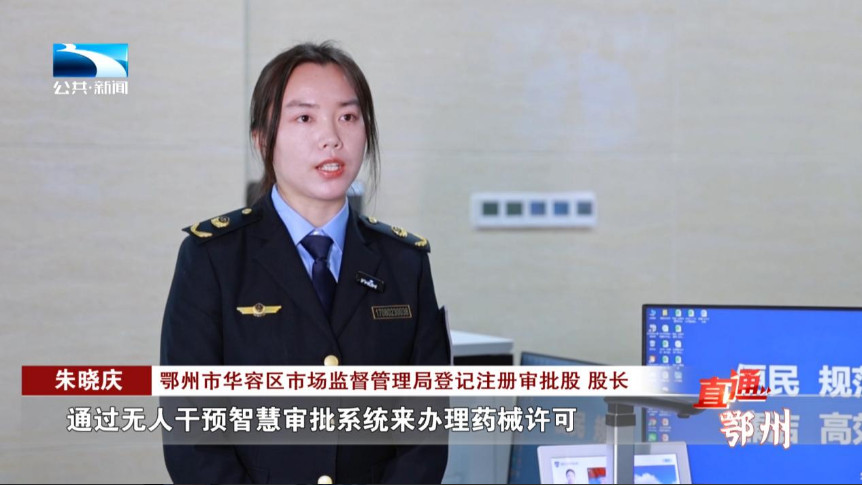 鄂州市华容区市场监督管理局登记注册审批股股长 朱晓庆:我们华容区共有药店40多家,自9月29号系统上线以来,已经有20多家药店,通过无人干预智慧审批系统来办理药械许可,审批时间从原来的6个工作日压缩至了半个小时,审批速度提升了98.96%,有效减少了企业和群众的办事等待时间。