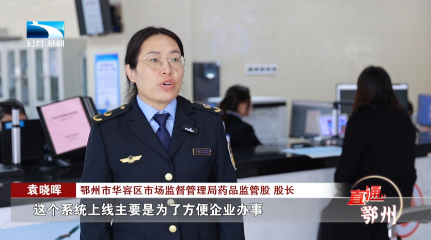 鄂州市华容区市场监督管理局药品监管股股长 袁晓晖:这个系统上线主要是为了方便企业办事,企业只需要在网上申请,然后通过一键办理就可以操作,非常便捷。通过智慧审批系统,实现“数据跑路”代替“群众跑腿”。