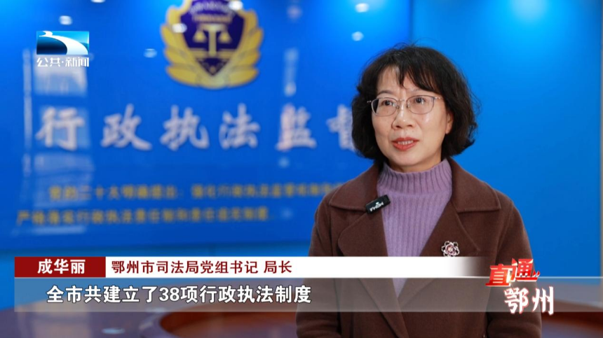鄂州市司法局党组书记、局长 成华丽:今年合力推进了32个行政执法领域整治,全市共建立38项行政执法制度,下一步鄂州市将全面深化“自查自纠”奖励机制,向更多行业领域推广,引导企业从被动处罚向主动整改转变。