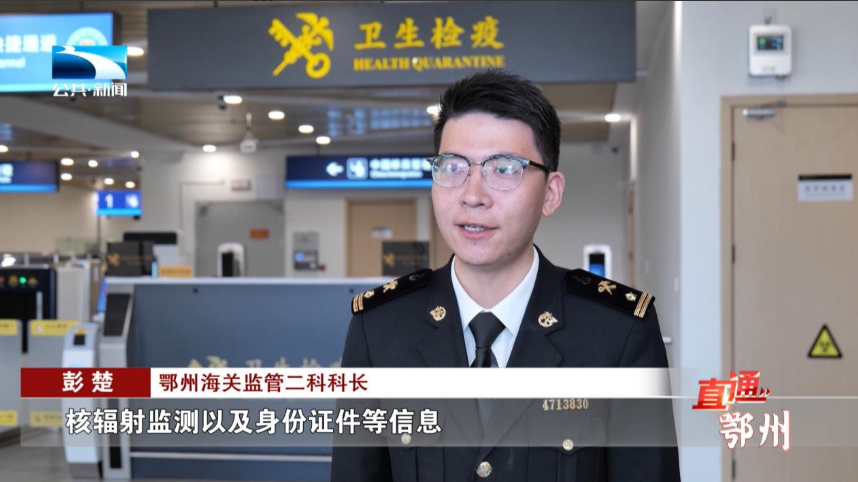鄂州海关监管二科科长 彭楚:“三检合一”联合查验通道,通过配备智能化探测设备,实现了国际机组人员的体温、人脸、行李物品X光机图像,核辐射监测以及身份证件等信息,在一个环节一次采集,做到了并行处置、联动放行,简化了通关流程,提升了通关效率。