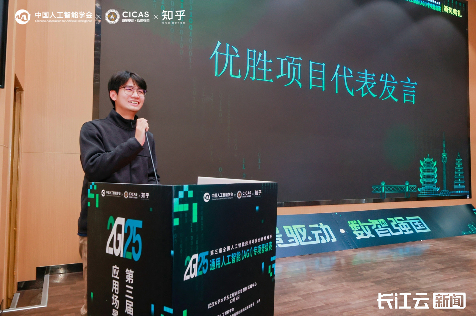 2025年12月5日,由中国人工智能学会主办,全国人工智能应用场景创新挑战赛组委会与知乎联合承办,知乎城市湖北运营中心协办,以「场景驱动·数智强国」为主题的2025第三届全国人工智能应用场景创新挑战赛——通用人工智能(AGI)专项晋级赛,在武汉大学工创中心成功举办。大赛得到湖北省委网信办、武汉大学、武汉大学科技园、湖北省自媒体协会科普专委会和极目新闻的大力支持。赛事旨在通过竞赛机制加速人工智能核心技术攻关与行业应用,推动通用人工智能赋能实体经济,培育新质生产力。