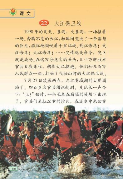 “狂风卷着巨浪,猛扑着堤岸,战士们高声喊道:‘狂风为我们呐喊!暴雨为我们助威!巨浪为我们加油!’”这篇收录于苏教版五年级语文下册的《大江保卫战》,真实记录了1998年那场惊心动魄的抗洪斗争。