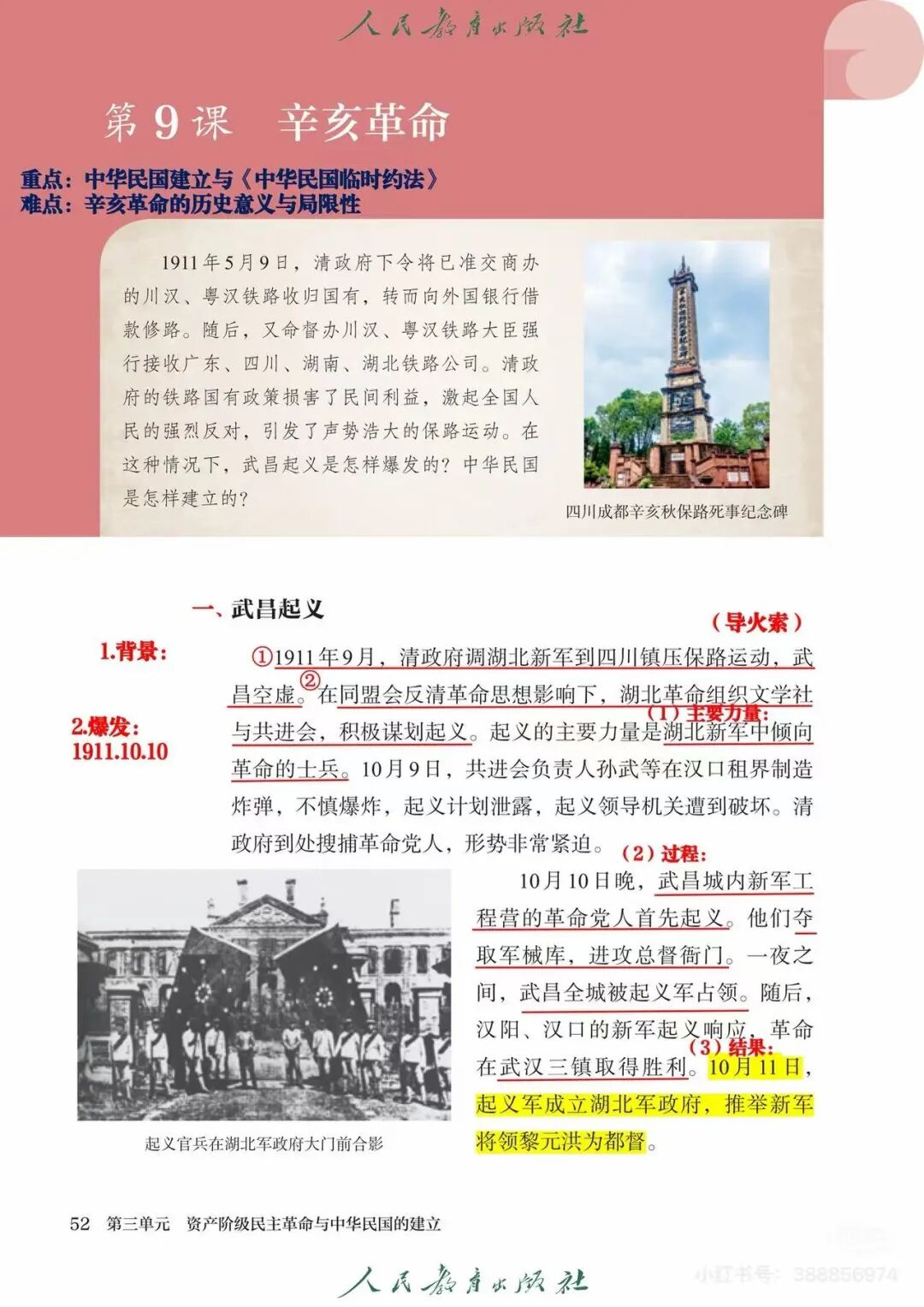 正如人教版《中国历史》八年级上册所载:“10月10日晚,武昌城内新军工程营的革命党人首先起义……一夜之间,武昌全城被起义军占领。”
