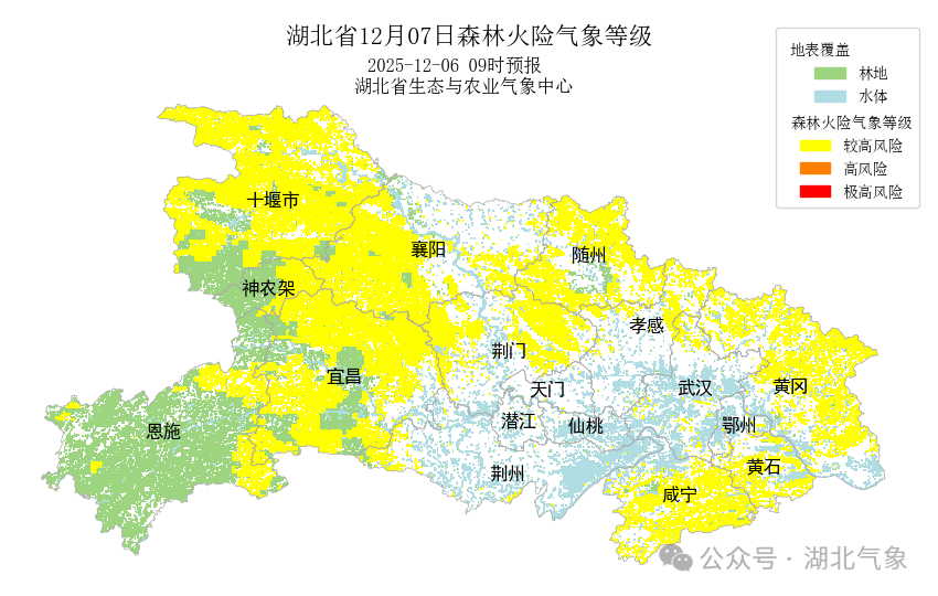 12月6日08时-7日08时,全省晴天到多云,其中恩施西部夜间有零星小雨。最高气温16~20℃,最低气温1~6℃,偏南风转偏北风2到3级。