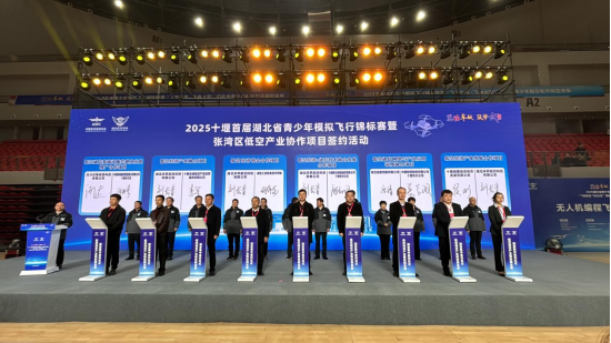 开幕式现场同步举办了张湾区低空产业协作项目签约活动,签约产业合作项目6个,协议金额7.2亿元。本次省级赛事亮点纷呈,备受瞩目,既是全国首创将模拟飞行锦标赛与航空航天模型竞赛深度融合的“双赛合一”办赛新模式,也是该赛事首次走出省会武汉,落地其他市州举办。此外,本次赛事还是2026全国青少年模拟飞行锦标赛的选拔赛,优胜选手将有机会代表湖北参加全国性竞赛。