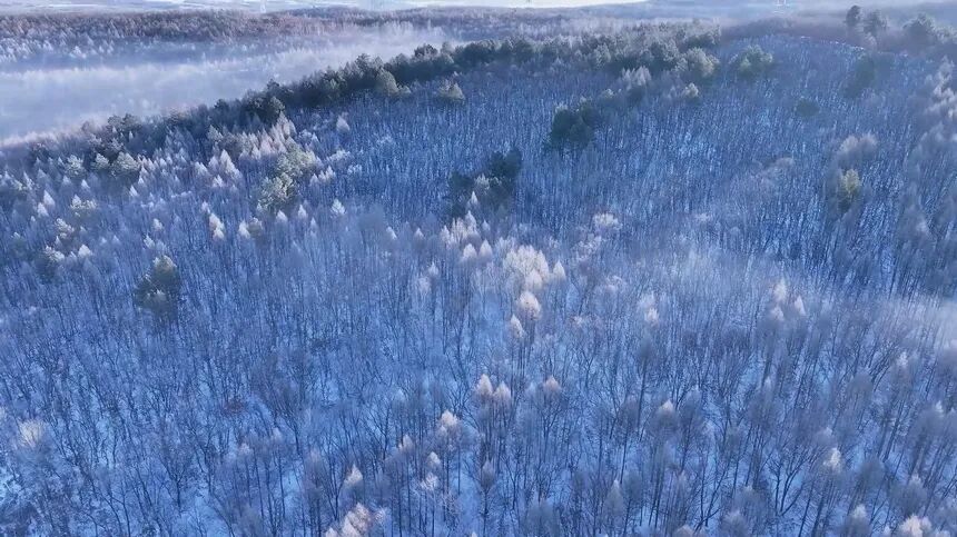 黑龙江黑河市爱辉区迎来一场梦幻雾凇景致。人民网-黑龙江频道
