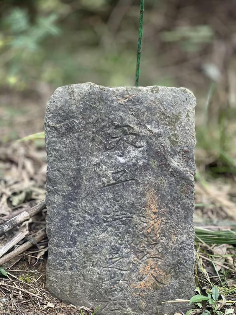 在泉塘塆一处向阳的山坡,大家停下脚步。一座不起眼的土坟前,立着一方小小的青石碑,宽约20厘米,高不过30厘米。岁月在石面蚀出深痕,但镌刻的字迹依然清晰可辨——“浙江人朱子清之墓”。坟头,两盏褪色的清明灯在微风中轻晃,几束略显陈旧的黄色坟标,昭示着不久前有人来过。