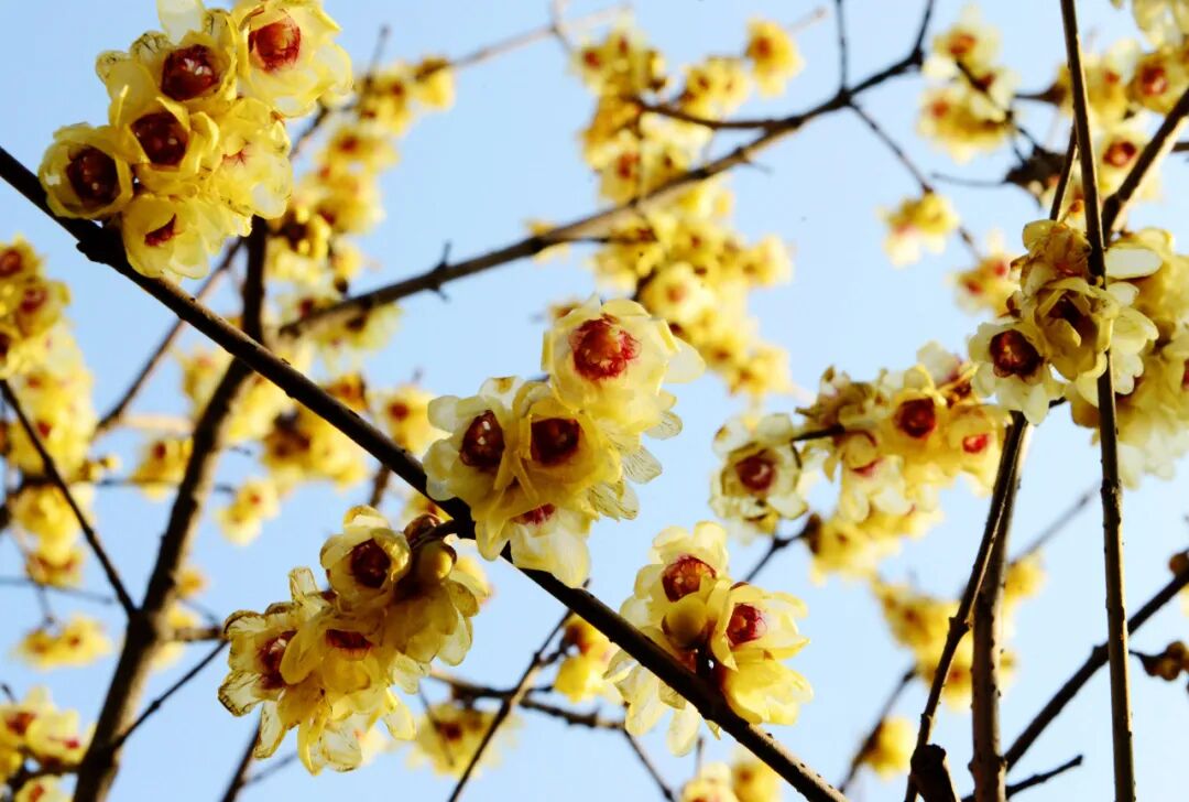 在蜡梅谷景区和县城蜡梅公园里,每到冬季,蜡梅花便次第开放,先是一两朵、后是数十朵,之后就一朵赶一朵争先恐后地开……